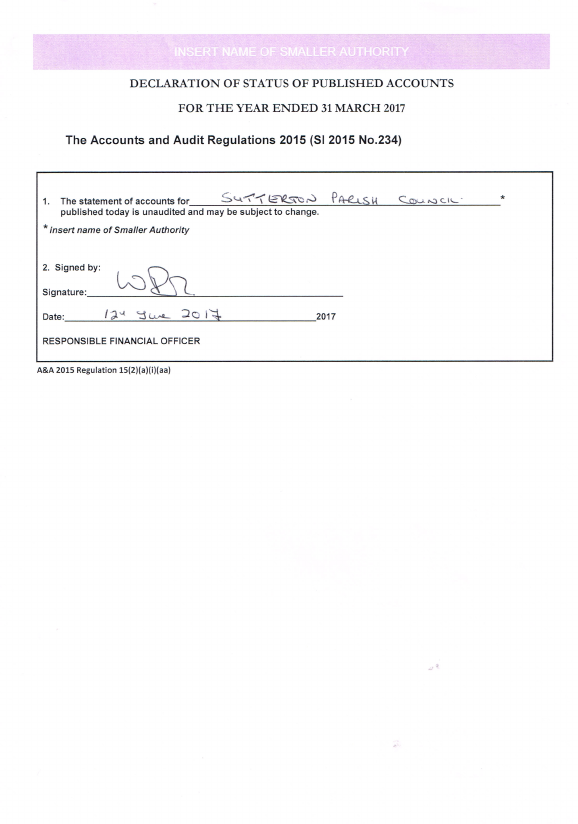 Declaration of Status of Published Accounts 2016-2017